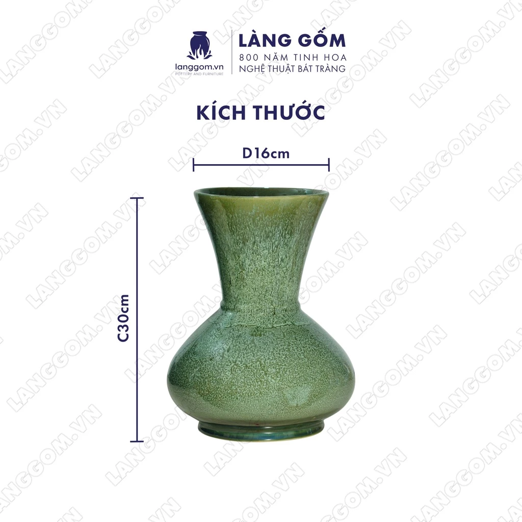 Premium Bat Trang Ceramic Vase, Flame Glaze Sky Blue, Flat Garlic Shape - Lang Gom