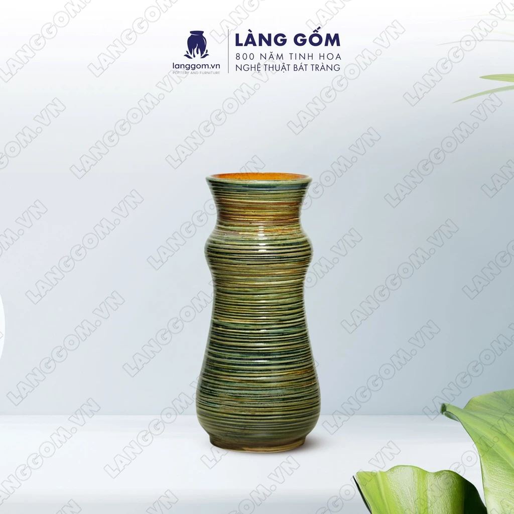 Bat Trang Premium Ceramic Kiln-Fired Glaze Vase - Dry Wood Color, Waisted Shape - Gift & Home Decor by Lang Gom