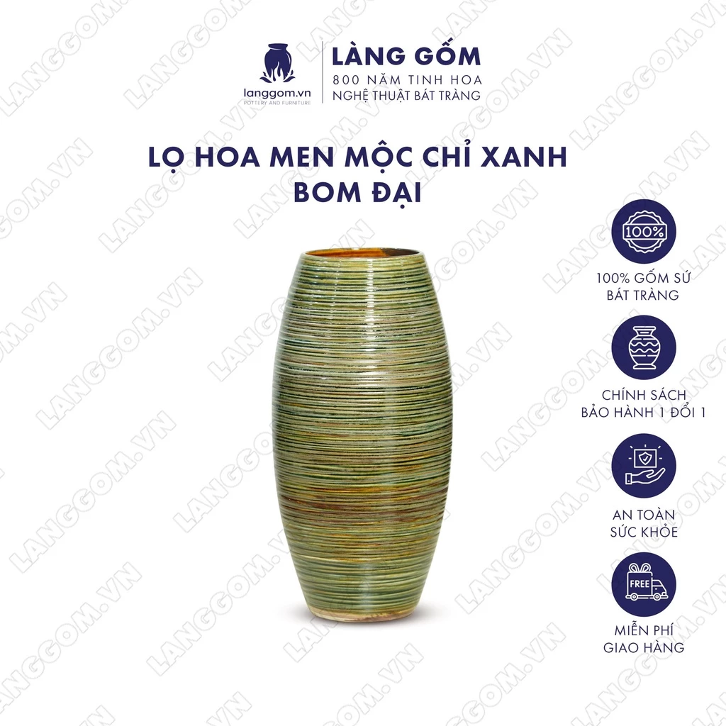 Bat Trang Premium Flame-Glazed Ceramic Vase - "Mộc Khô" Dry Wood Color Large Bomb Shape 33cm | Làng Gốm (Gift & Decoration)