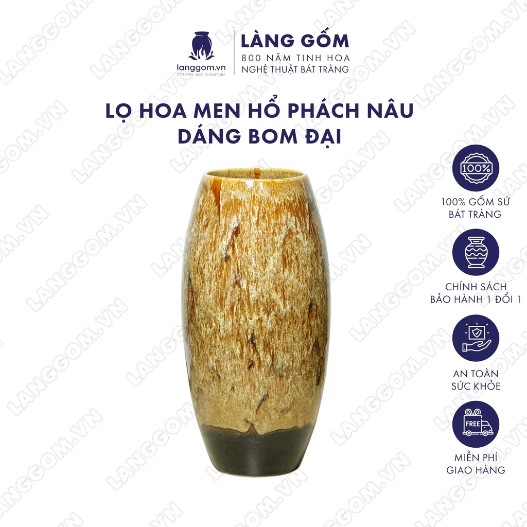 ベトナム バッチャン焼き 高級窯変釉 花瓶 壺 琥珀ブラウン ボム型 (大) ギフト・装飾品【ラングゴム】の通販・個人輸入代行販売商品