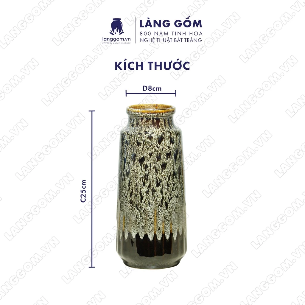 Bat Trang Premium Ceramic Vase/Flower Pot with Flame Glaze in Amber Black Stripe Bottle Design - Lang Gom