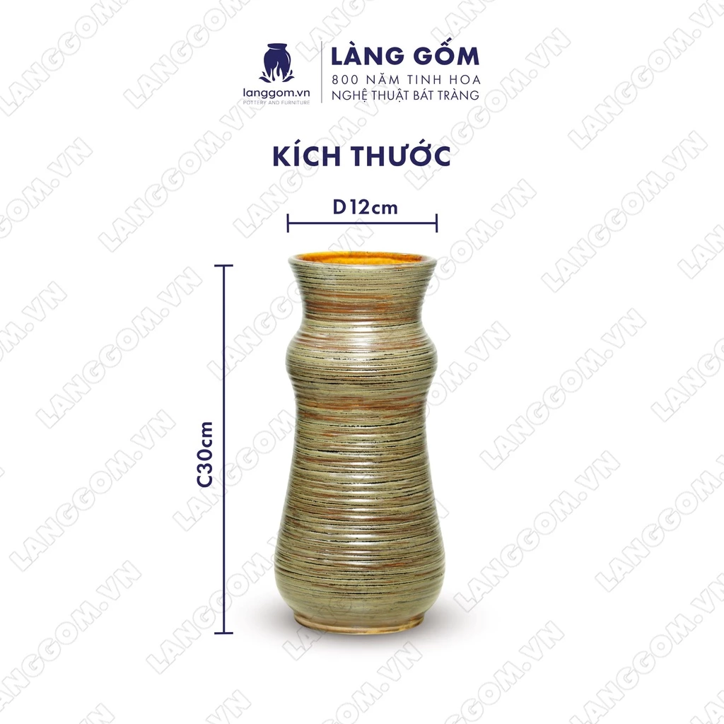 Bat Trang High-Grade Ceramic Vase/Flower Pot with Flame-Varying Glaze, "Moc Chi Black" Color, Hourglass Shape, for Gifts and Decoration - Lang Gom