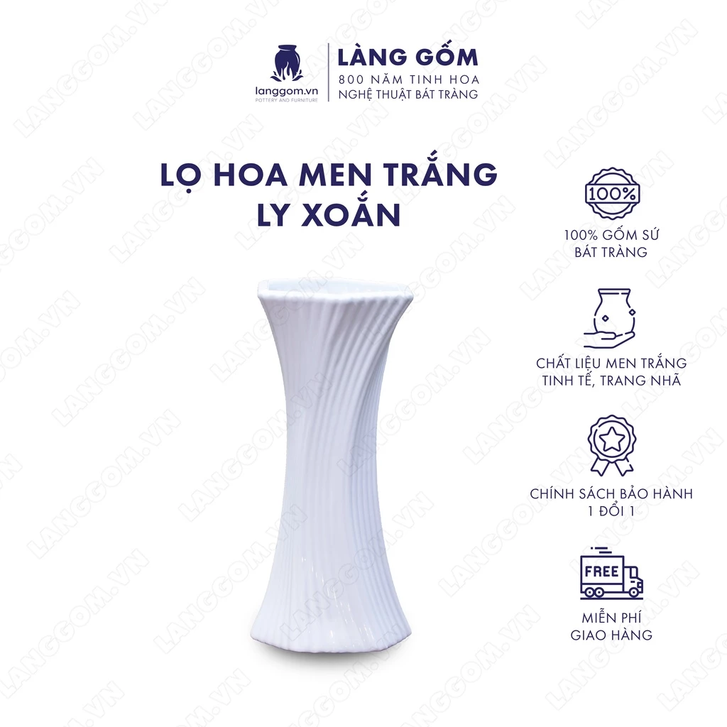 Làng Gốm Bat Trang Premium White Ceramic Twisted Design Decorative Vase