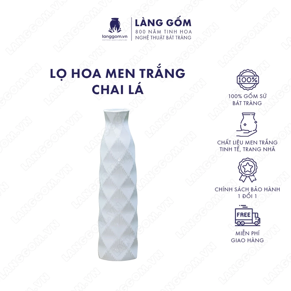 バッチャン焼き 高級白磁花瓶 葉っぱボトル型 手彫り装飾 インテリアオブジェ - Làng Gốmの通販・個人輸入代行販売商品