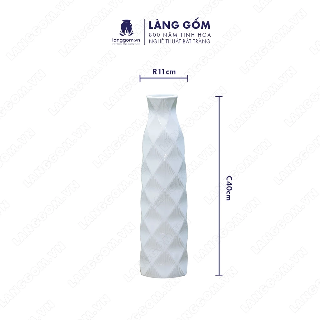 Làng Gốm Bat Trang High-End White Ceramic Decorative Vase - Leaf Bottle Style with Hand-Carved Design