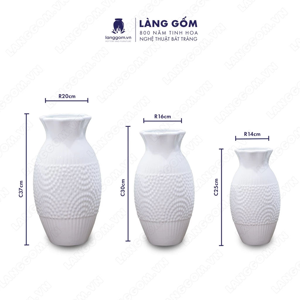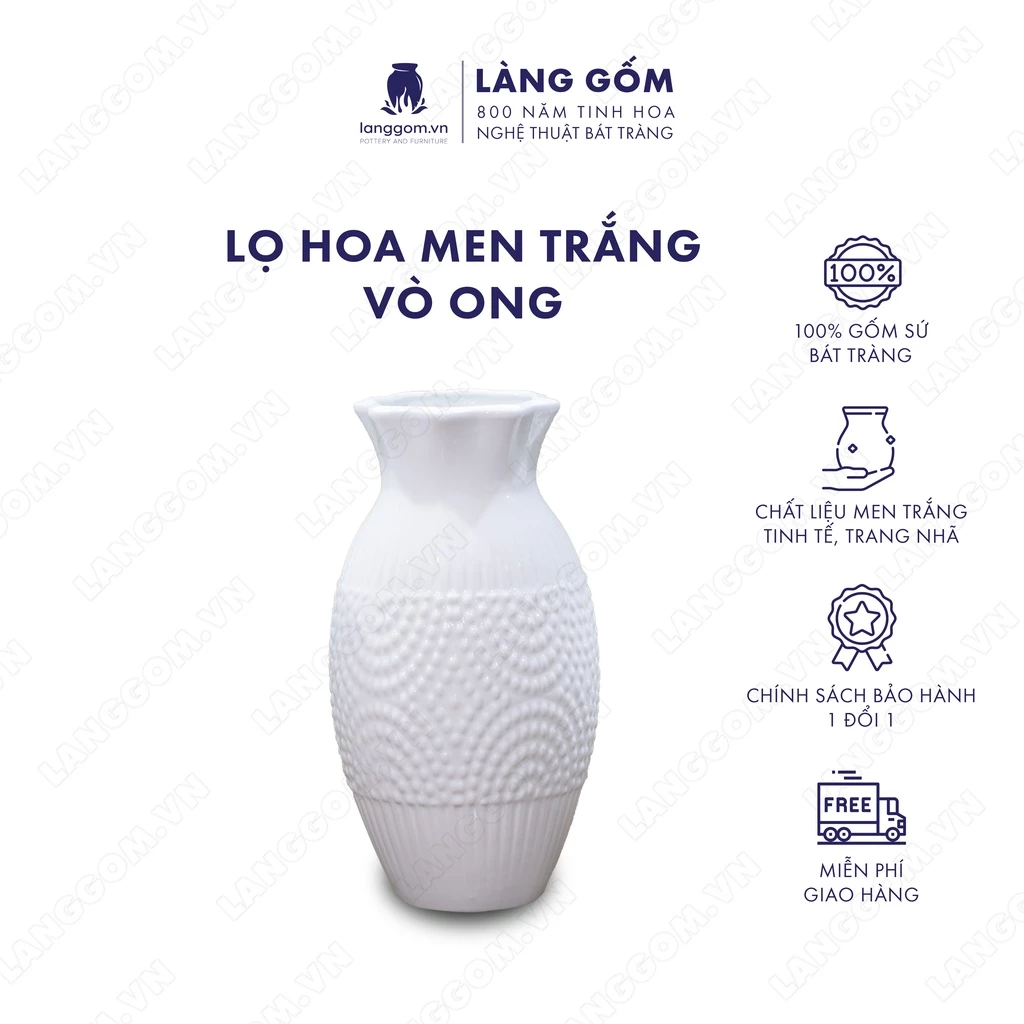Bat Trang Premium White Ceramic Vase - Honeycomb Style Decorative Flower Pot - Lang Gom