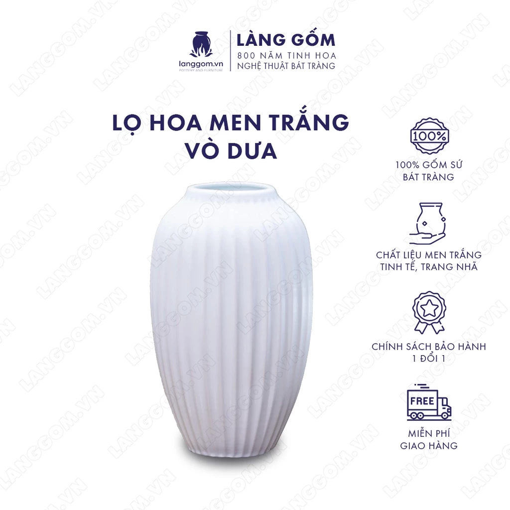 LÀNG GỐM Bat Trang High-Grade White Glazed Gourd-Shaped Decorative Ceramic Vase - For Living Room & Table