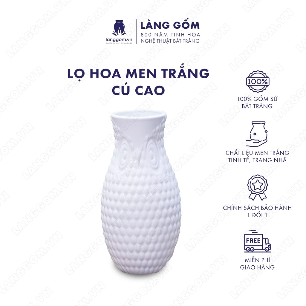 Bat Trang High-Grade Ceramic Owl-Inspired White Glaze Decorative Flower Vase - Lang Gom