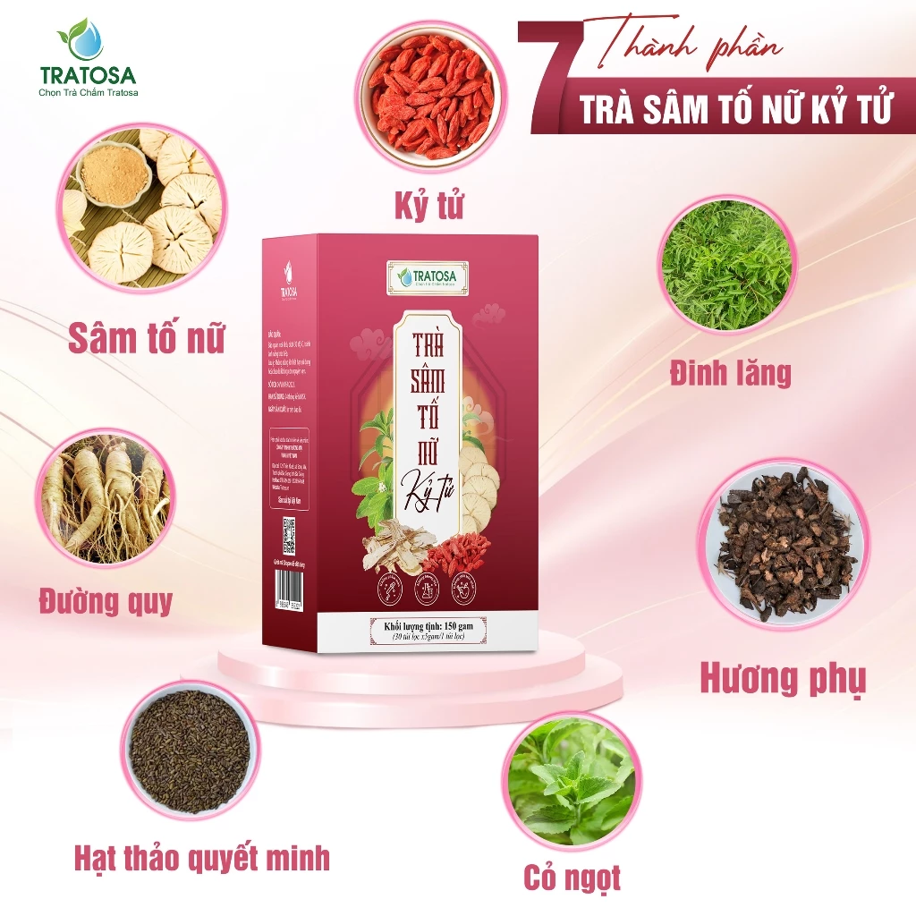 「TRATOSA 潤い美肌&ホルモンバランスサポート 7種ハーブティー」は、ベトナムの豊かな自然が育んだ7種類の天然ハーブをブレンドした、女性のための特別な健康茶です。サントヌー(Pueraria mirifica)とクコの実を主成分とし、内側から輝くような明るい肌と、穏やかなホルモンバランスの維持をサポートします。