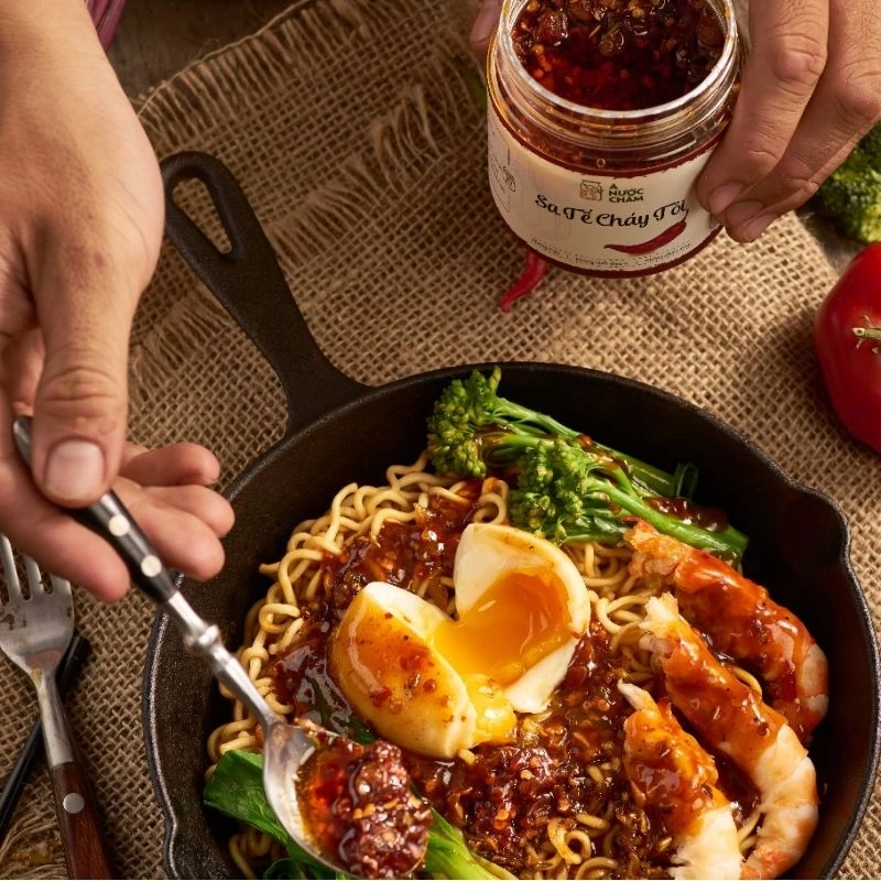 これは単なるサテ(チリオイル)ではなく、黄金色に揚げられたサクサクのニンニク粒がたっぷり入った濃縮ソースで、混ぜる、つける、味付けするなど、あらゆる料理に驚くほどの汎用性をもたらします。
