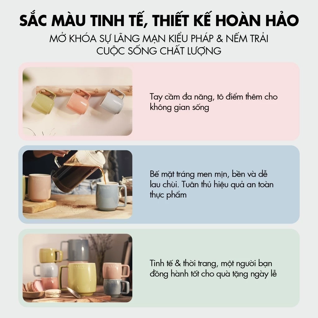 高品質な素材を使用し、丁寧な製造工程を経て作られています (原産国:中国)。STAUBのセラミックカップで、上質なカフェ体験をご自宅でお楽しみください。