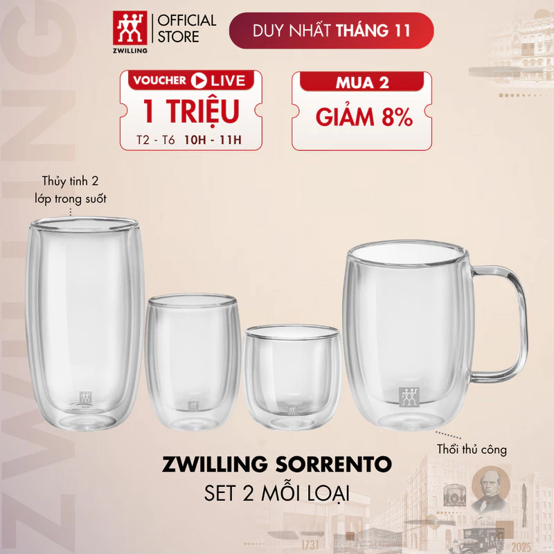 ZWILLING ソレント 高級二層ガラスカップ 2個セット – 複数容量対応 (200ml/240ml/350ml)の通販・個人輸入代行販売商品