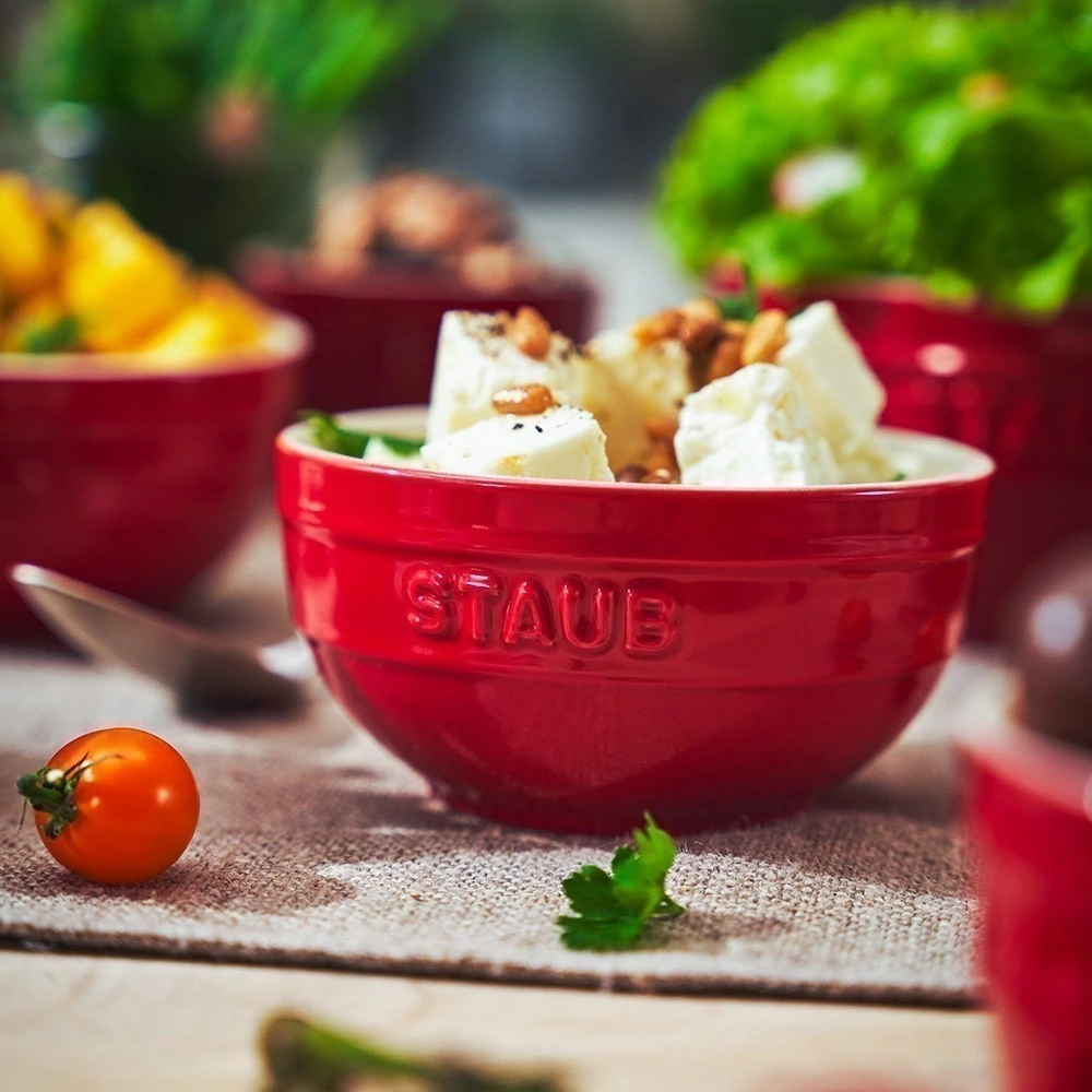 STAUB Premium Ceramic Bowl 17cm (Cherry Red/Basil Green)