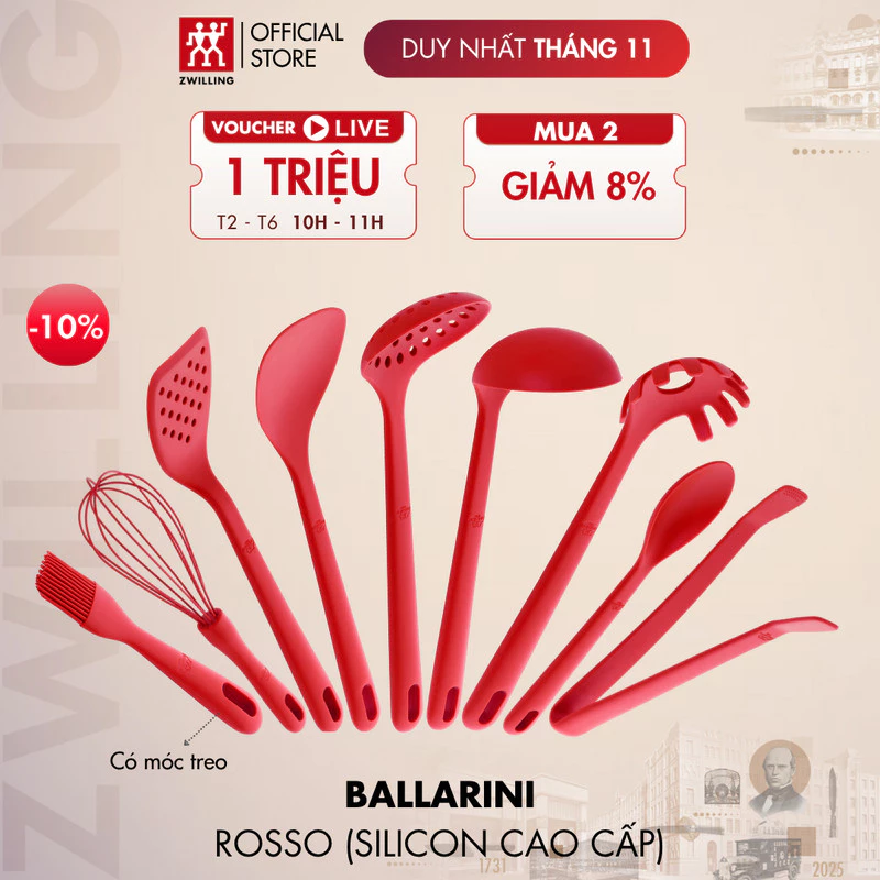 BALLARINI Rosso プレミアムシリコンキッチンツール5点セット – お玉、フライ返し、泡立て器、トング、ブラシ 高品質・耐熱・食洗機対応の通販・個人輸入代行販売商品