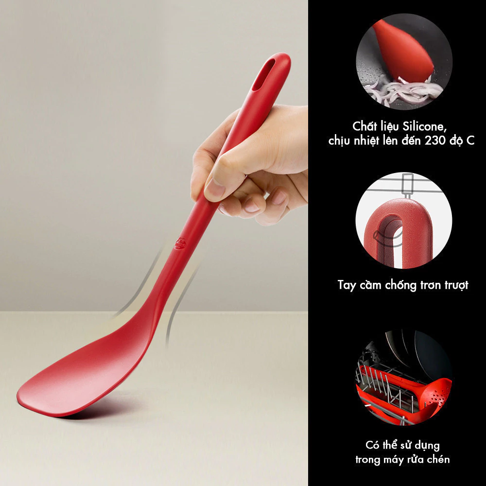 高品質な食品グレードのシリコン製で、230℃までの耐熱性(当社調べ)を誇り、熱い調理中でも安心してご使用いただけます。また、柔らかいシリコン素材は、高価な焦げ付き防止加工の鍋やフライパンを傷つける心配がありません。