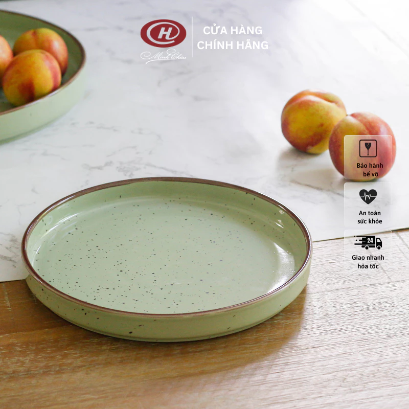 Sứ Minh Châu 和モダン グリーンソルト&ペッパー釉 リム付き丸皿 2サイズの通販・個人輸入代行販売商品