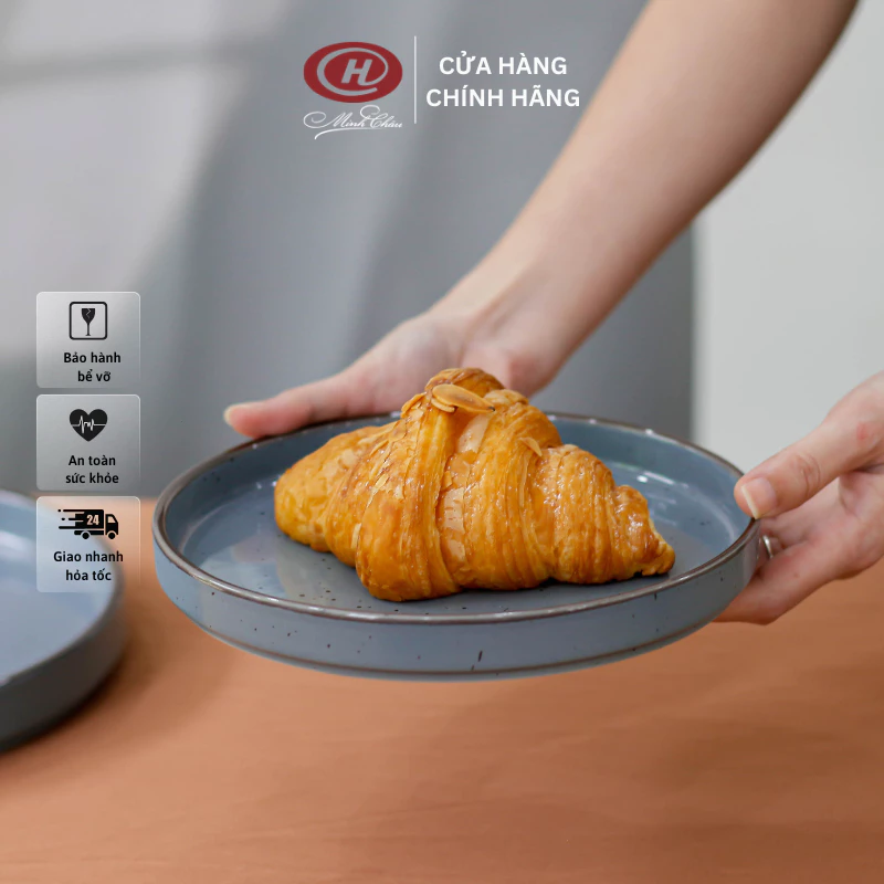 「ミンチャウ製 和風塩胡椒釉 リム付き青磁器平皿 2サイズセット」は、ベトナムを代表する大手陶磁器メーカー「Sứ Minh Châu(ミンチャウ陶器)」が手掛ける、食卓を彩る美しい平皿です。