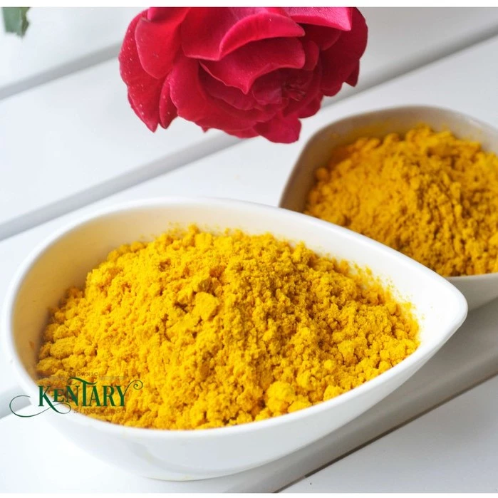 - 分離・精製: 新鮮なターメリックは、何度も沈殿とろ過を繰り返すことで、繊維やエッセンシャルオイルを完全に除去し、中核となる純粋なデンプンのみを残します。このプロセスにより、最終製品の苦味や刺激臭を最小限に抑えつつ、鮮やかな天然の黄橙色と高いクルクミン含有量を維持します。