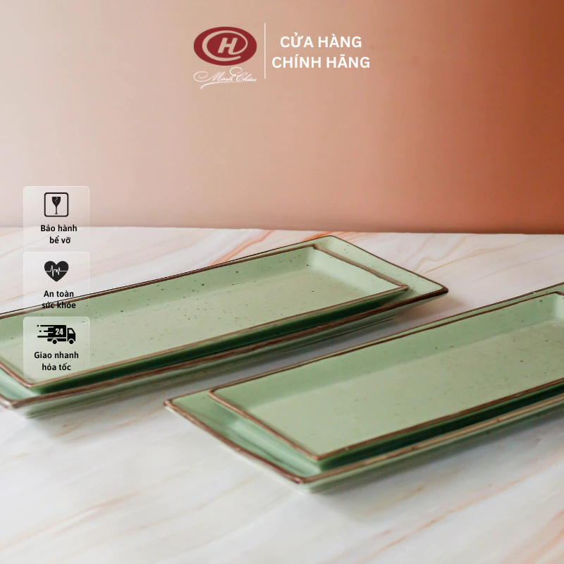 ミンチャウ 和風 塩胡椒釉 浅型長皿(緑色・多サイズ)| 日本製風高品質セラミックの通販・個人輸入代行販売商品