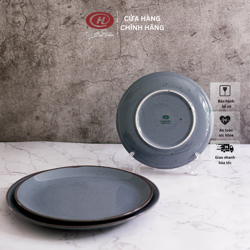 Minh Chau Japanese Style Blue Salt & Pepper Glaze Flat Ceramic Plate - Multi-Size Tableware
