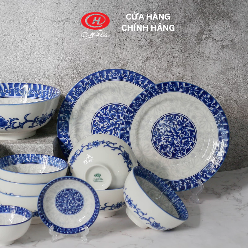 Minh Chau Ceramic 12-Piece Dinnerware Set with Blue Pattern - Vietnamese Beauty for Your Dining Table