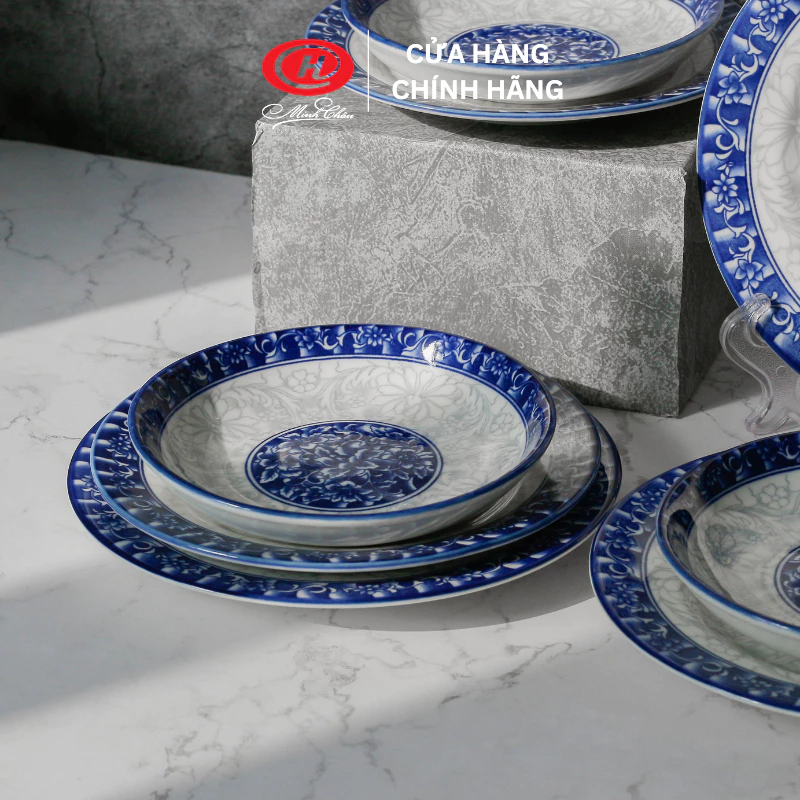 Minh Chau Blue Pattern Porcelain Plate - Vietnamese Tableware for Elegant Dining