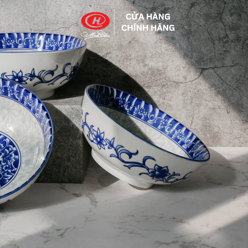 Minh Chau Porcelain Blue Patterned Deep Bowl - High-Quality Ceramic