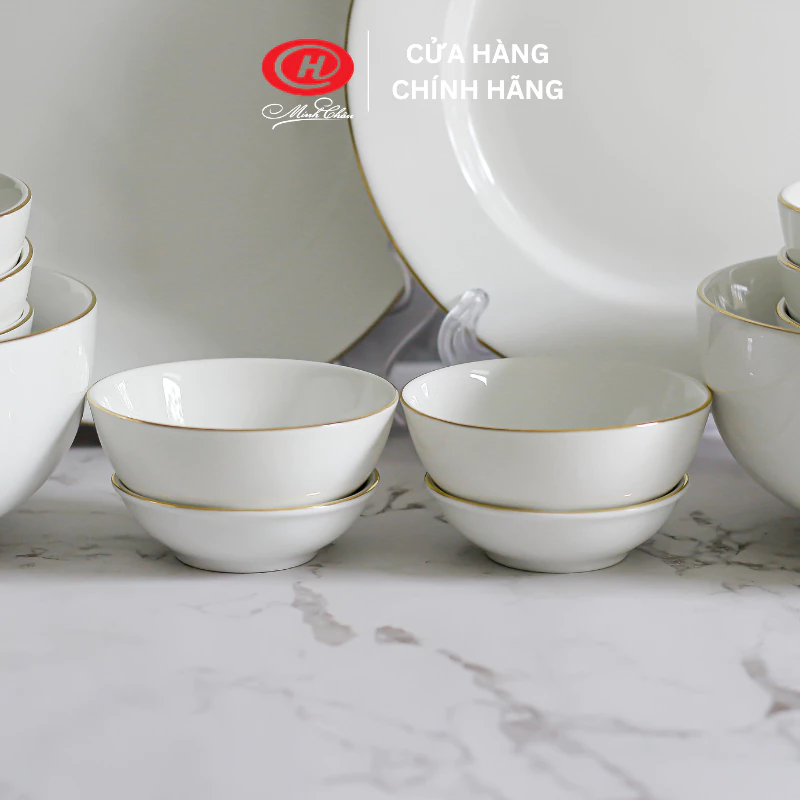 Minh Chau Gold Rim 14-Piece Porcelain Dinnerware Set - BO14vv