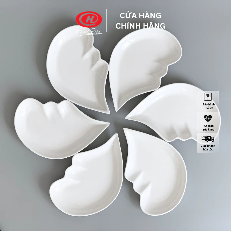 【Sứ Minh Châu】ハート型 白無地 陶器製 装飾プレート 6枚セット - DTT22B6(ベトナム製 高級食器)の通販・個人輸入代行販売商品