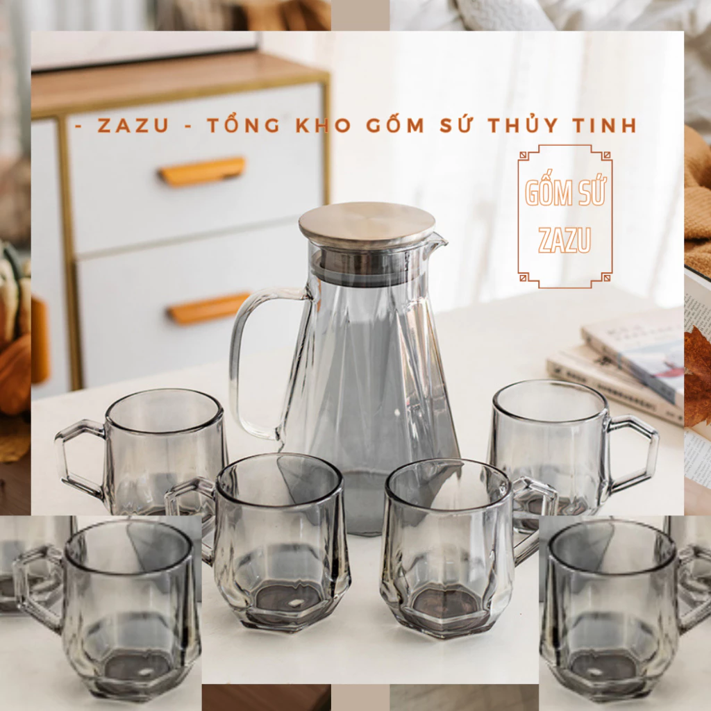 Gốm Xuân Xưa Heat-Resistant Glass Water Pitcher Set with Cups, 1500ml - Modern & Safe Tableware