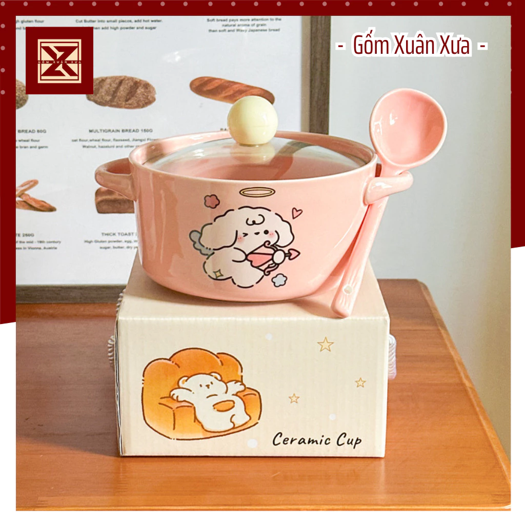 Gom Xuan Xua 2025 New Collection Cute Ramen Bowl & Spoon Set - High-Quality Ceramic Tableware