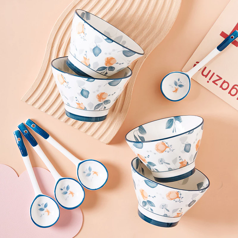 Gosu(ゴス)高級陶磁器食器セット - オレンジ花柄×ブルーリム | 耐熱・食洗機対応の通販・個人輸入代行販売商品
