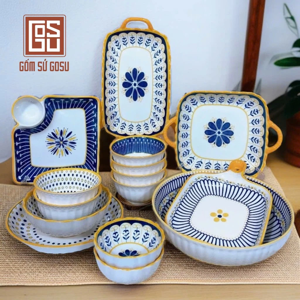 Gosu Brand Nordic Brocade Dinnerware Set - Smooth Glaze, Beautiful & Premium Quality (Type 1)