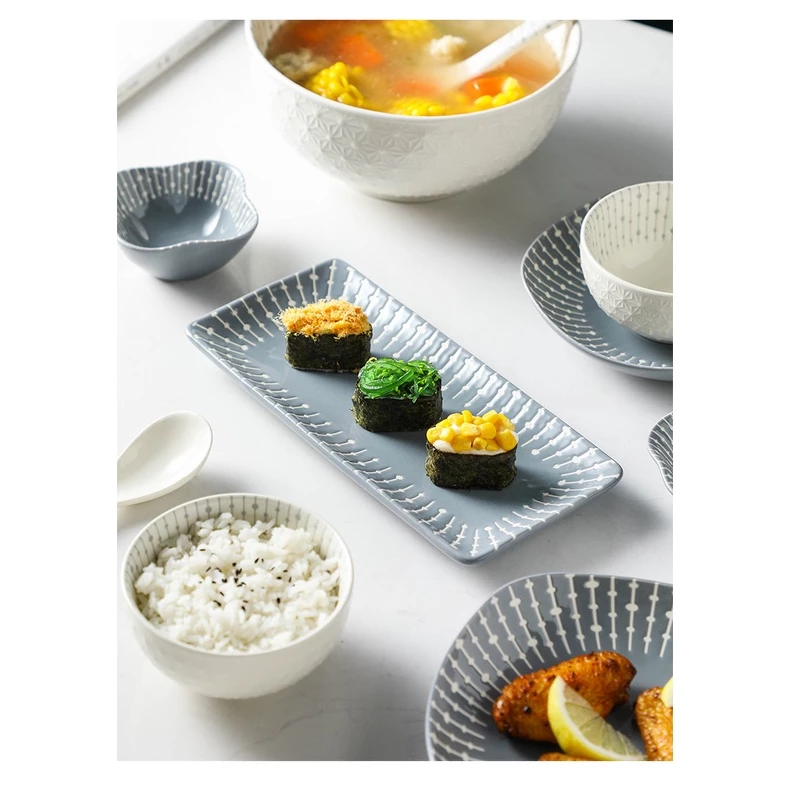 Gosu 北欧スタイル 白灰色ストライプ 釉薬加工 高級陶磁器食器セットの通販・個人輸入代行販売商品