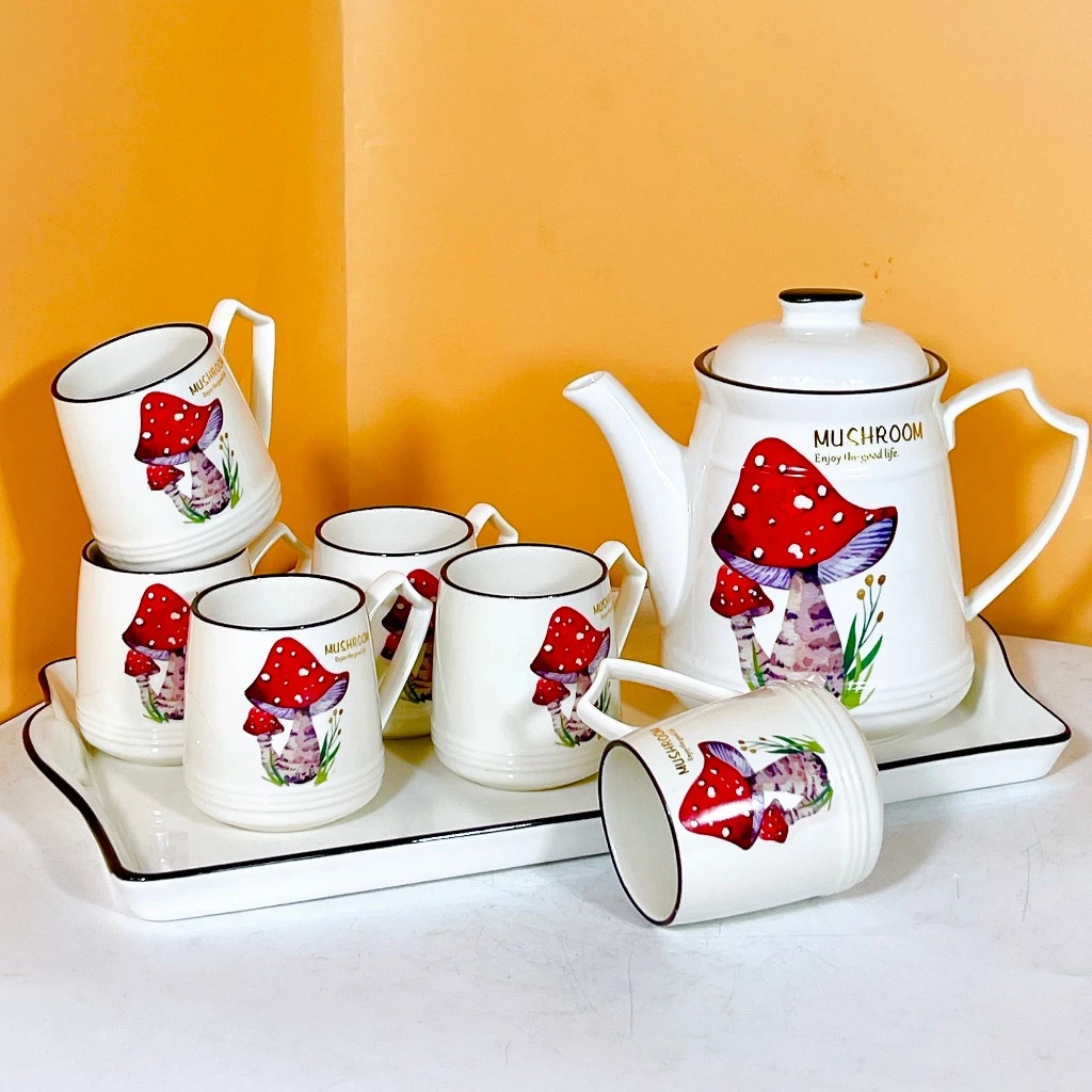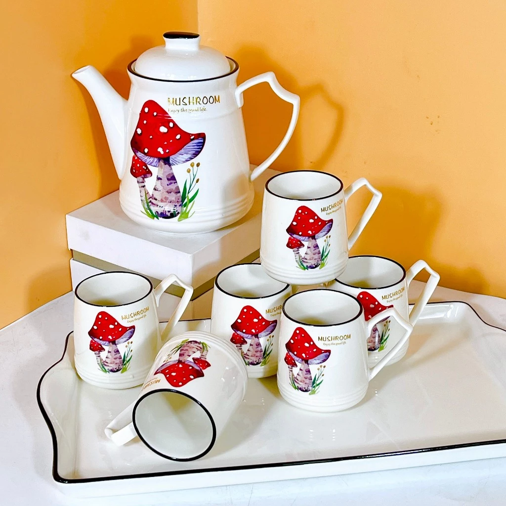 GOSU Brand Glossy Ceramic Tea Set with Mushroom Pattern | Elegant & Modern Teatime