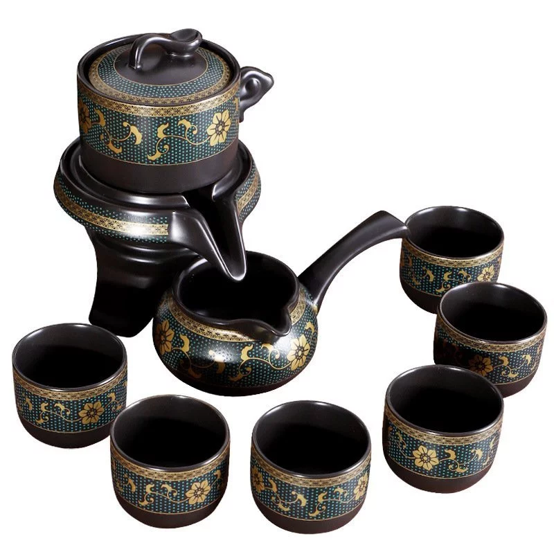 Gosu Ceramic "Coi Xay" Rotating Tea Set - Traditional Tea Ceremony Kit