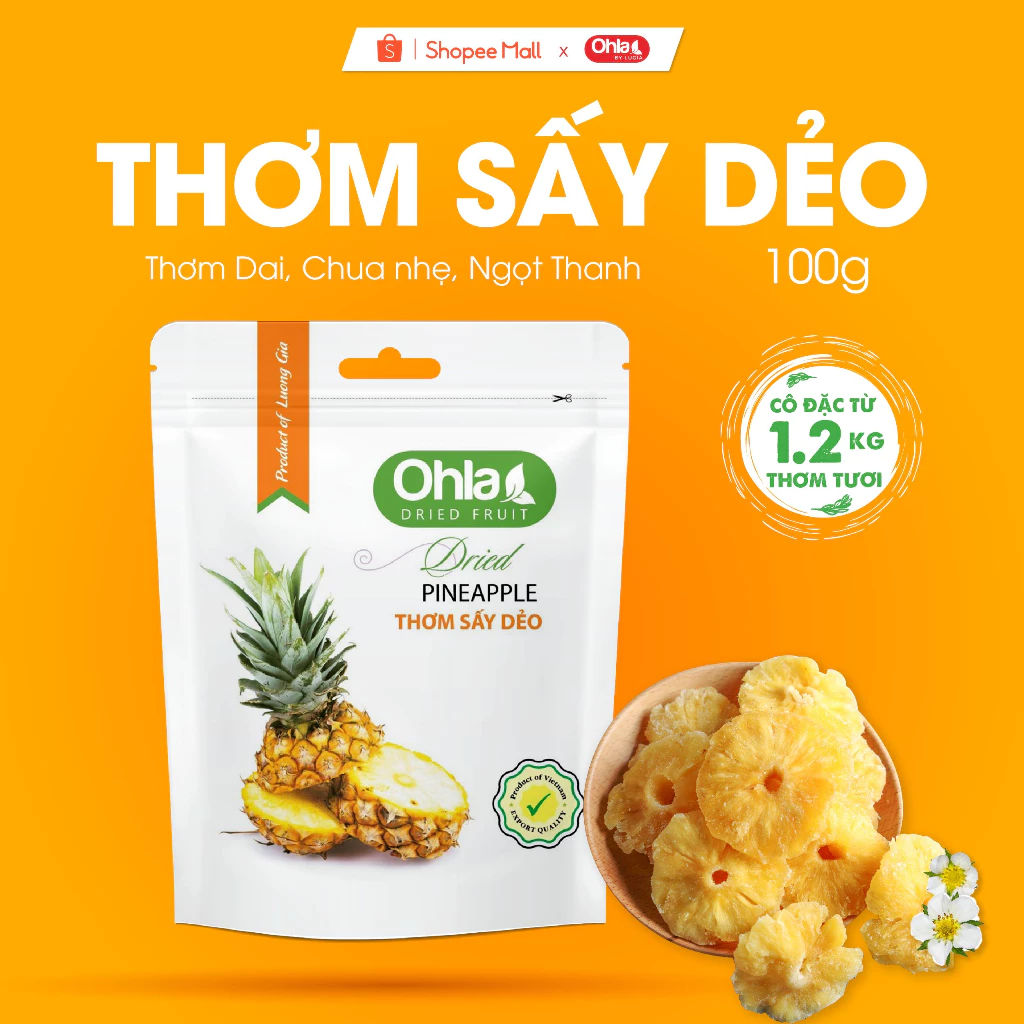 Ohla Dried Soft Pineapple 100g | Healthy Snack, Natural Flavor, Export Quality