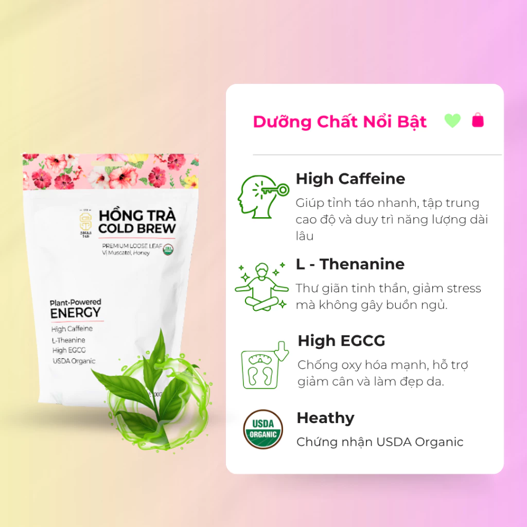 「Trà Cold Brew Hữu Cơ – Trà Xanh & Hồng Trà Nguyên Lá」は、USAオーガニック認証を取得した、高品質な緑茶と紅茶をブレンドしたコールドブリュー専用ティーバッグです。