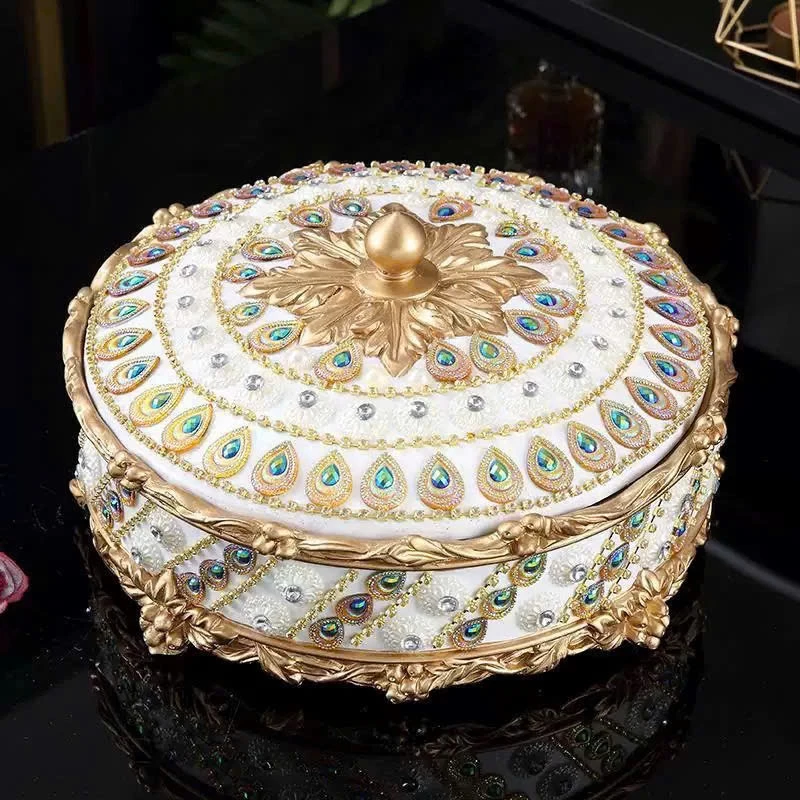 豪華ラインストーンが輝く、仕切り付きお菓子・フルーツトレイで、食卓を華やかに演出します。最大**5つの独立した仕切り**により、様々なお菓子、ドライフルーツ、ナッツ、またはジャムなどを種類ごとに美しく整理して盛り付けることができます。