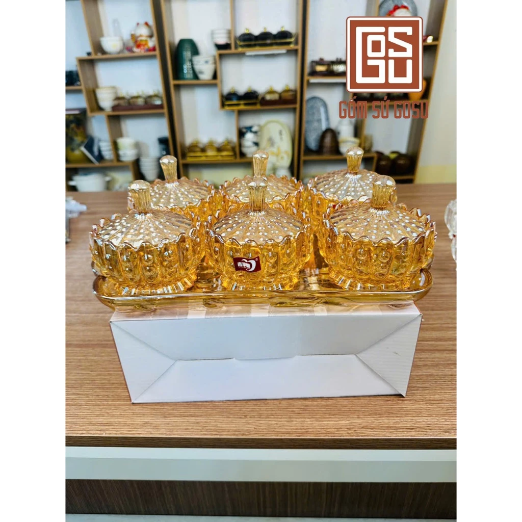 ゴースーブランド エレガント ストライプ柄 クリスタルガラス製 ジャム・お菓子入れ (テト用)の通販・個人輸入代行販売商品