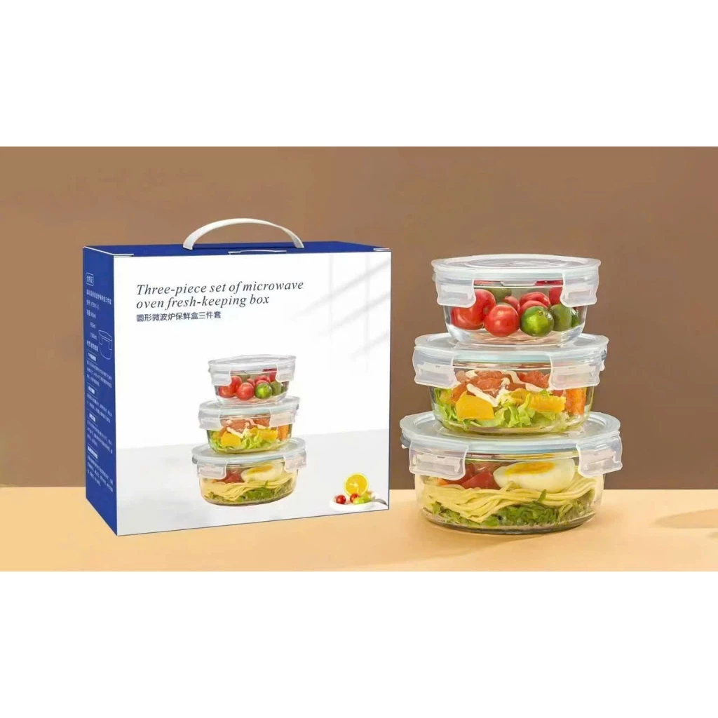 Premium Heat-Resistant Glass Food Storage Containers - Set of 3, Up to 400°C