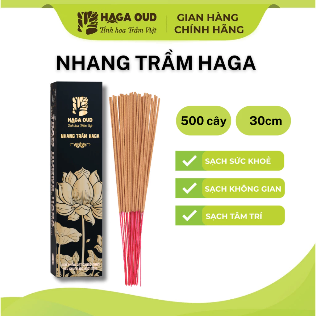 HAGA Agarwood Incense Sticks, 500 Sticks (30cm), 3-Clean, 100% Pure Agarwood Powder, Economical, Safe, Sacred Fragrance