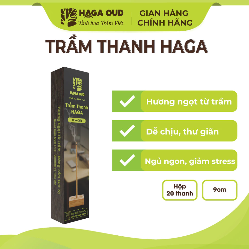 HAGA Agarwood Stick Incense (Takeless) - Premium 100% Pure Agarwood Powder, 9cm/20 sticks, with Wooden Holder