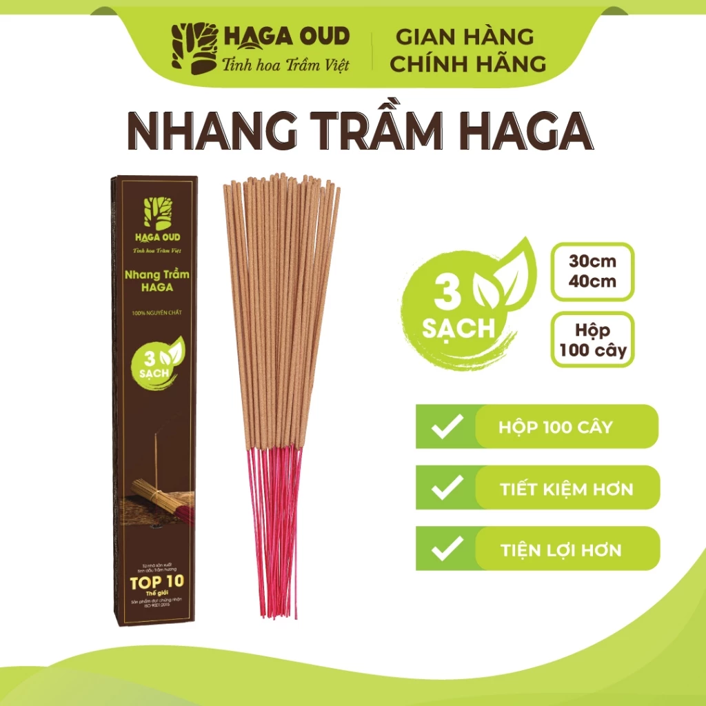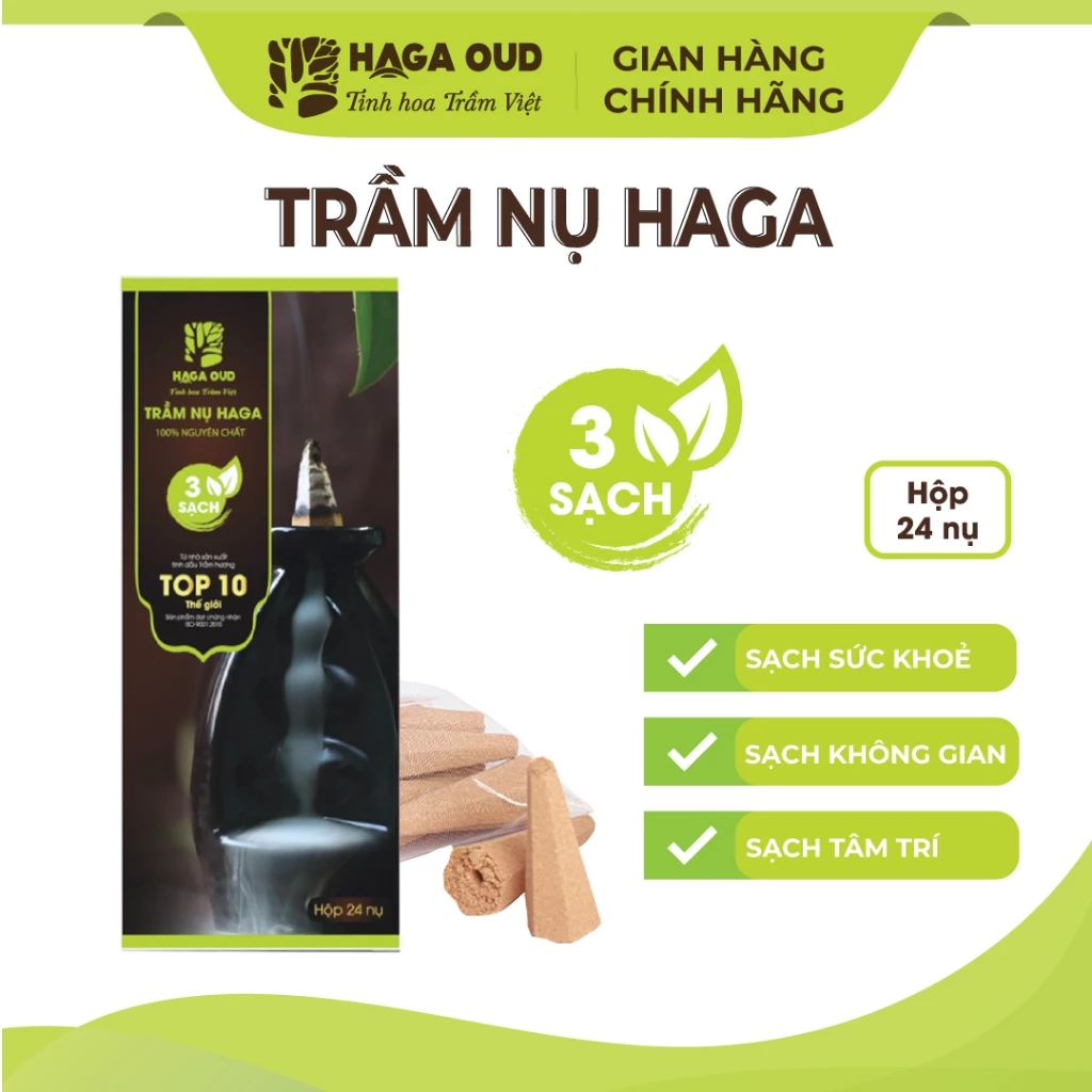 “TAM AN COMBO” with HAGA 3-Clean Agarwood Incense Sticks 100 pcs, Agarwood Cones, Premium HAGA Agarwood Powder 30g