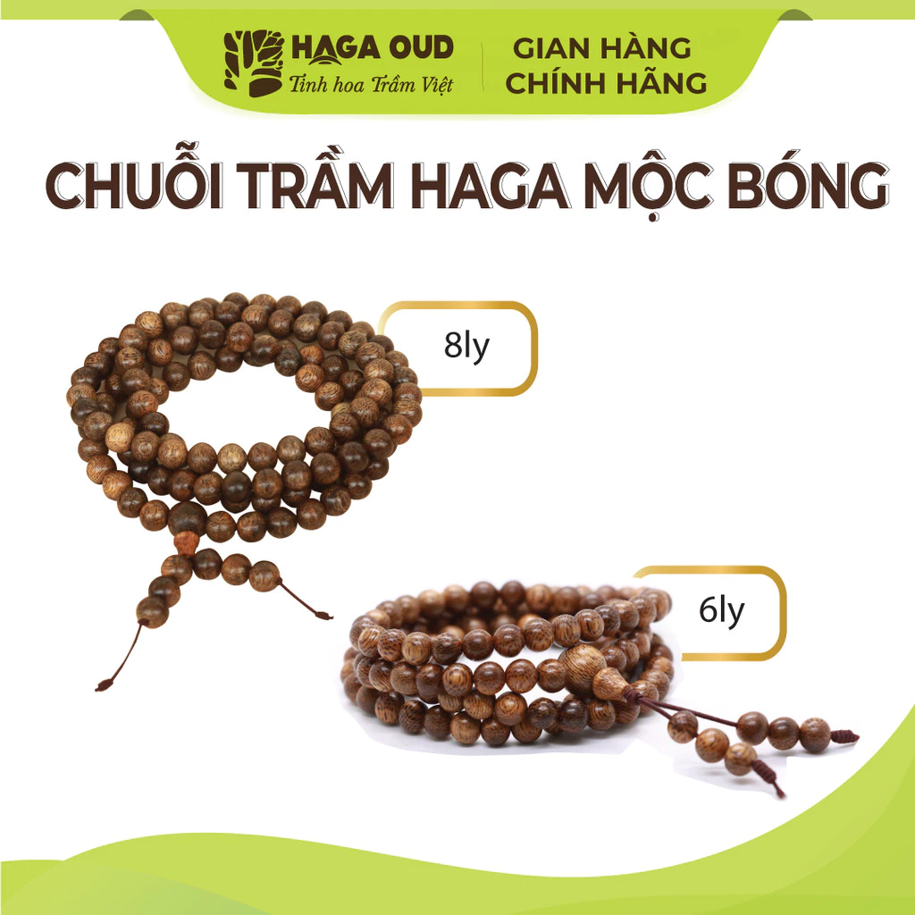 HAGA光沢沈香珠は、純粋な沈香木から作られたHAGA沈香ブランドの製品です。天然の沈香木を小さく丸い形に削り、滑らかに研磨し、光沢を出すことで、明るい色合いとより良い保存性を実現しています。