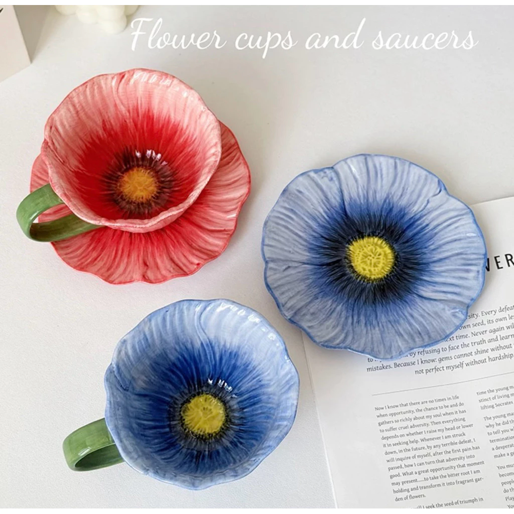 Premium Red Orchid Ceramic Cup and Saucer Set - Classic Kitchen Decor & Elegant Tableware