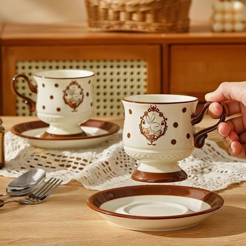 Retro Rabbit Pattern 250ml Classic Ceramic Mug for Coffee & Tea