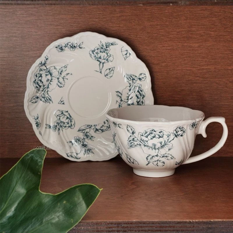 中世風 青い薔薇 浮き彫り 陶磁器 カップ&ソーサー 250ml ラテ・アフタヌーンティー用 高級ギフトの通販・個人輸入代行販売商品