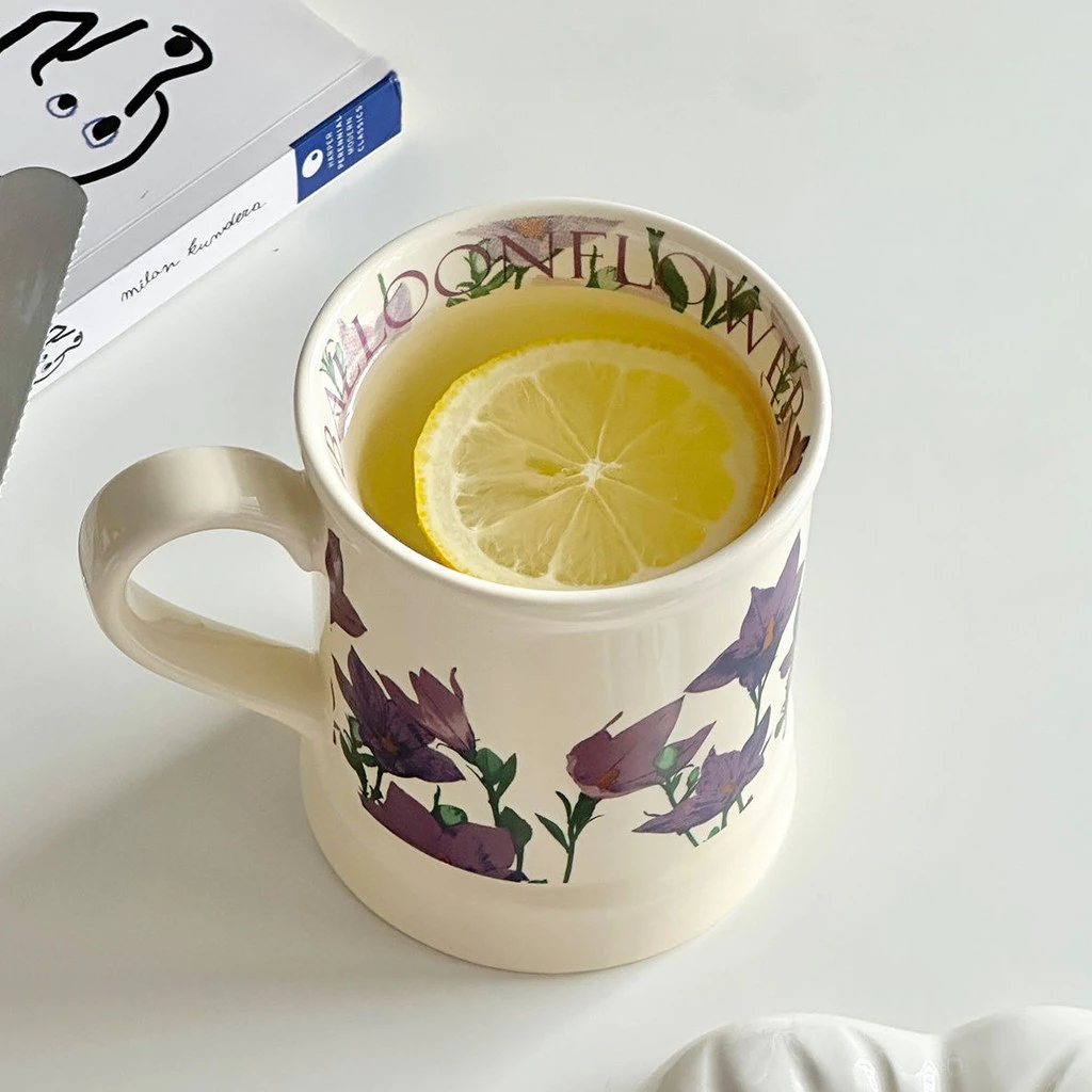 Purple Campanula Flower Ceramic Mug 350ml Large Capacity for Office & Home Use