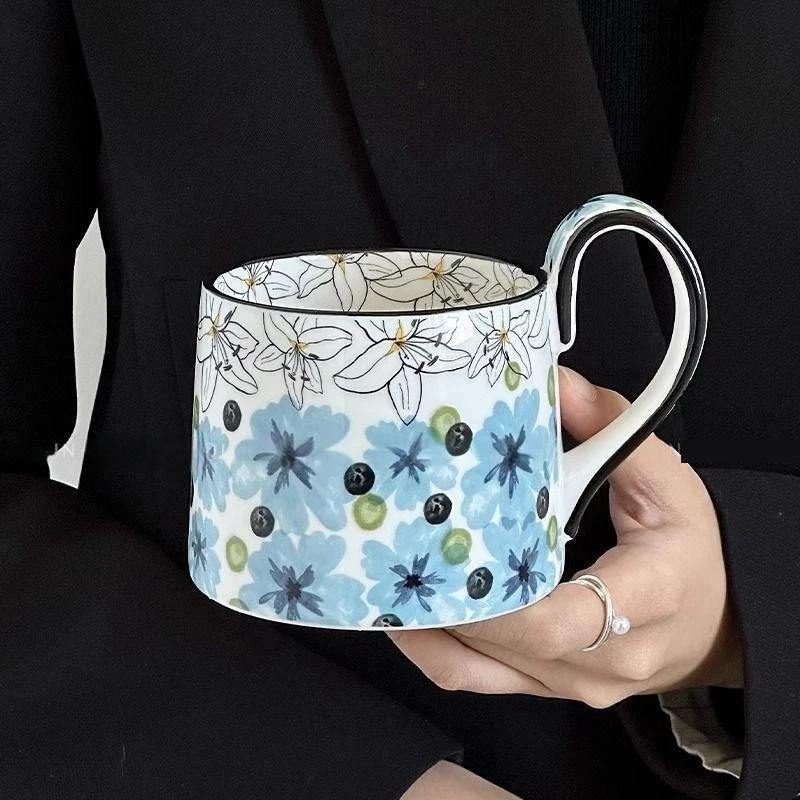 高級手描きクラシック花柄セラミックマグカップ 420ml ゴールド - 恋人向け限定コレクターズエディションギフトの通販・個人輸入代行販売商品